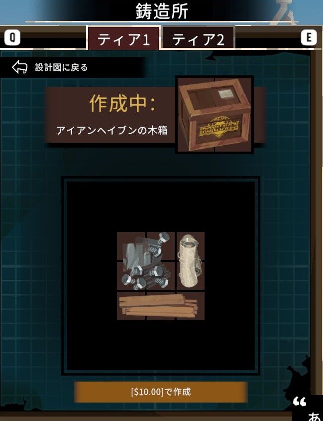 ・ティア1 アビリティ ライト、汽笛、望遠鏡 アイアンヘイブンの木箱と研究用パーツが必要。