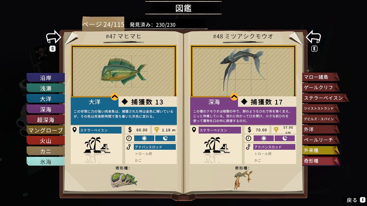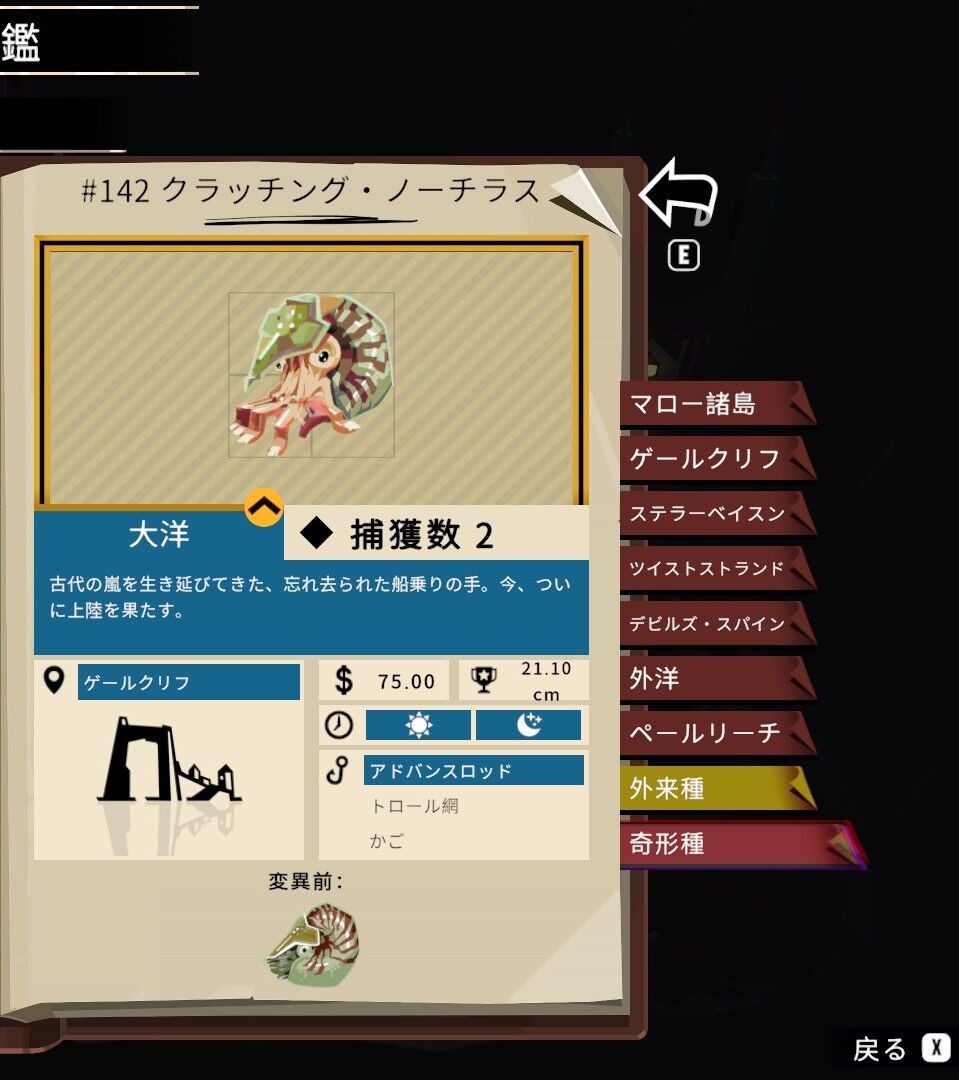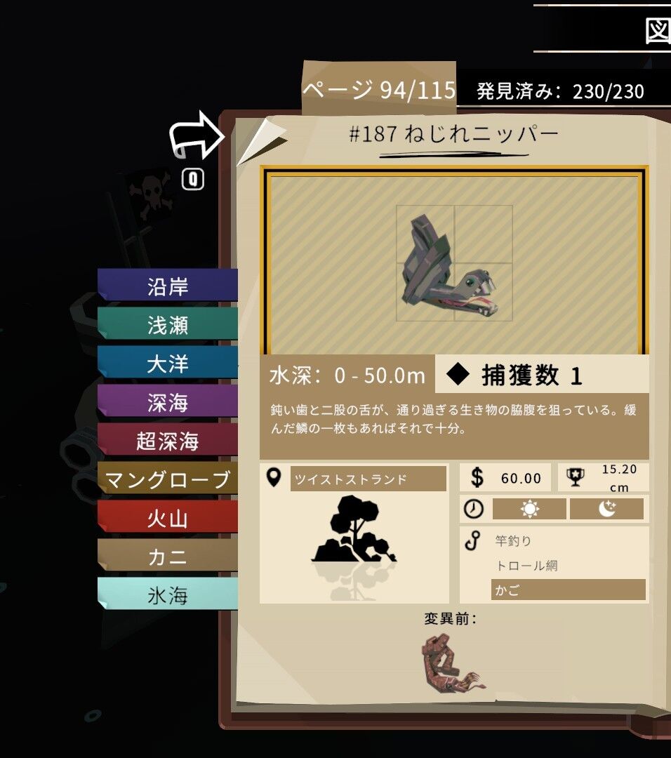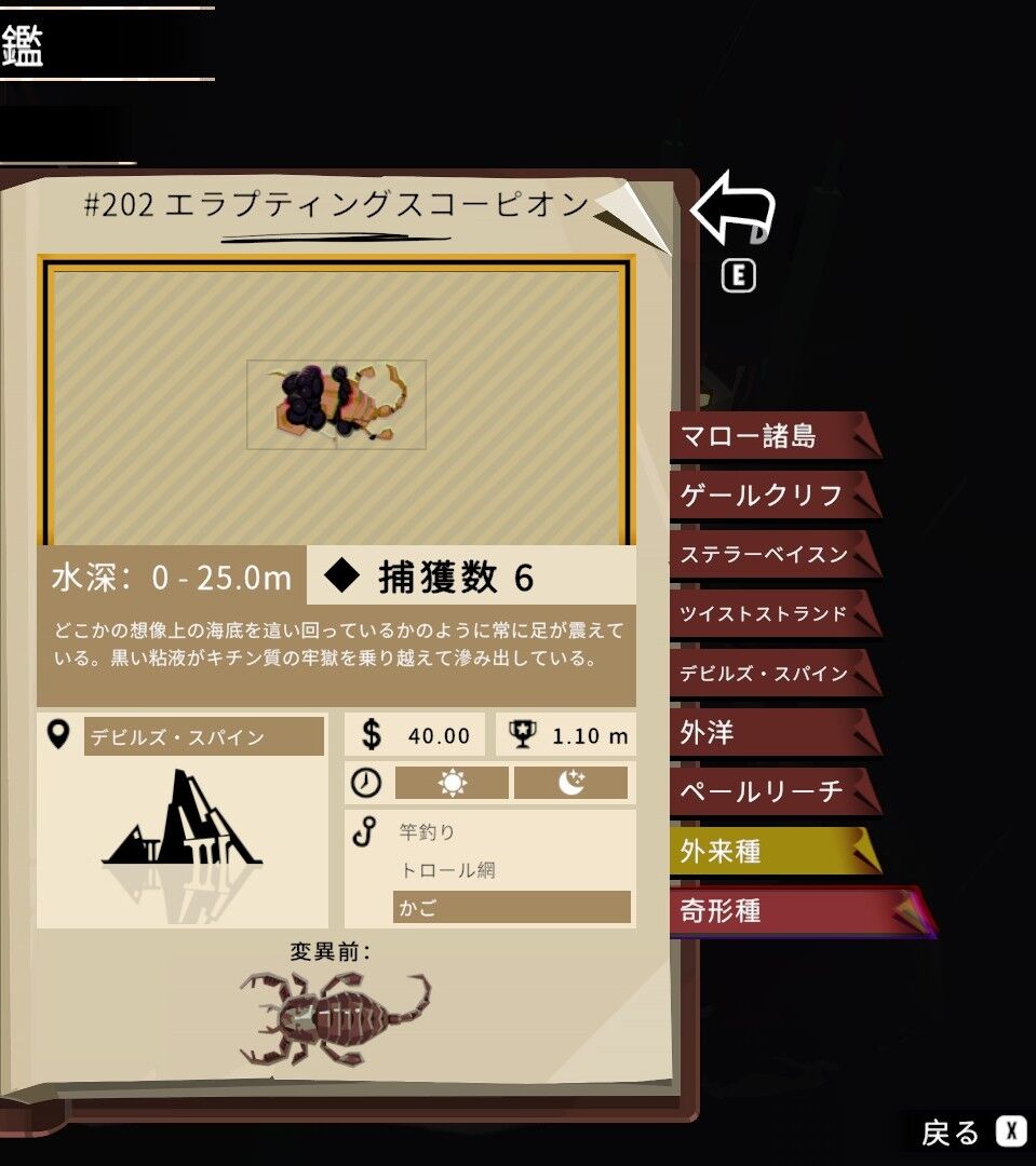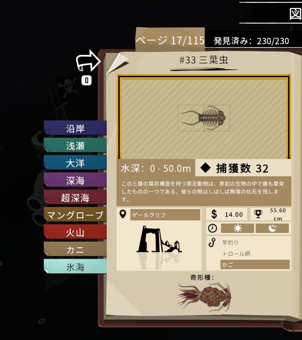 この図鑑の最後の生物については釣り方が特殊なので
